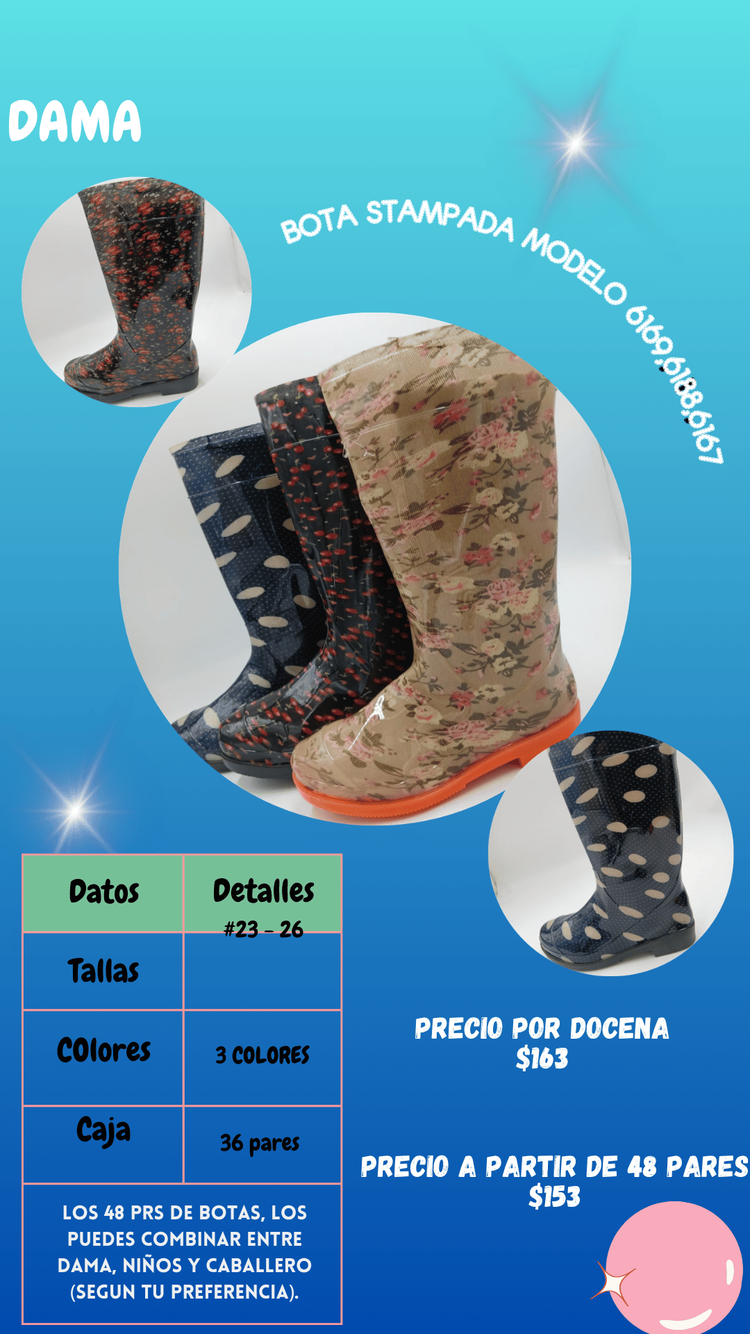 Bota estampada 6169. Tallas 23 al 30, paquete de 6169618836 pares.