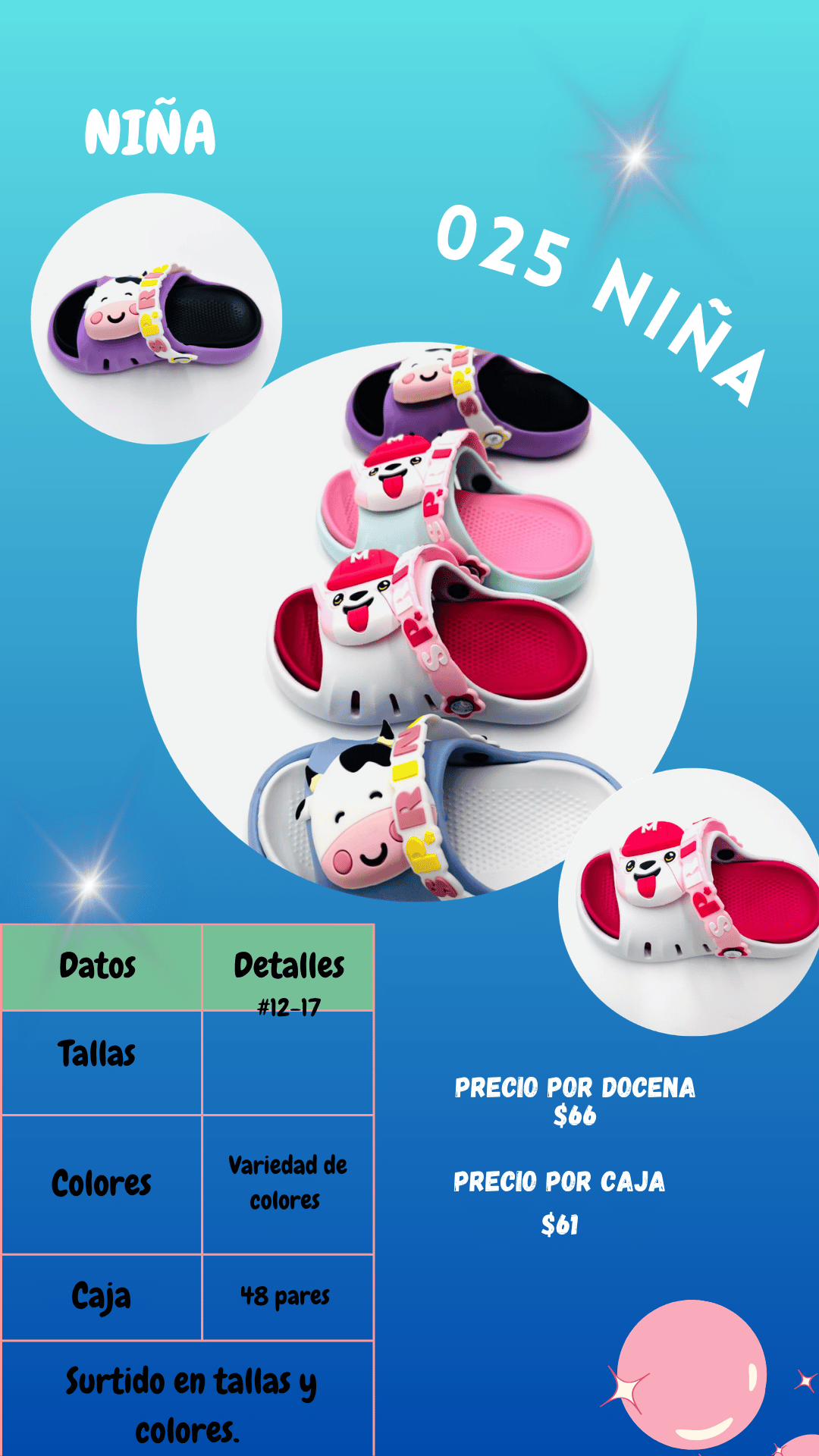 Sandalia 025 niña. Tallas 12 al 17, paquete de 48 pares.