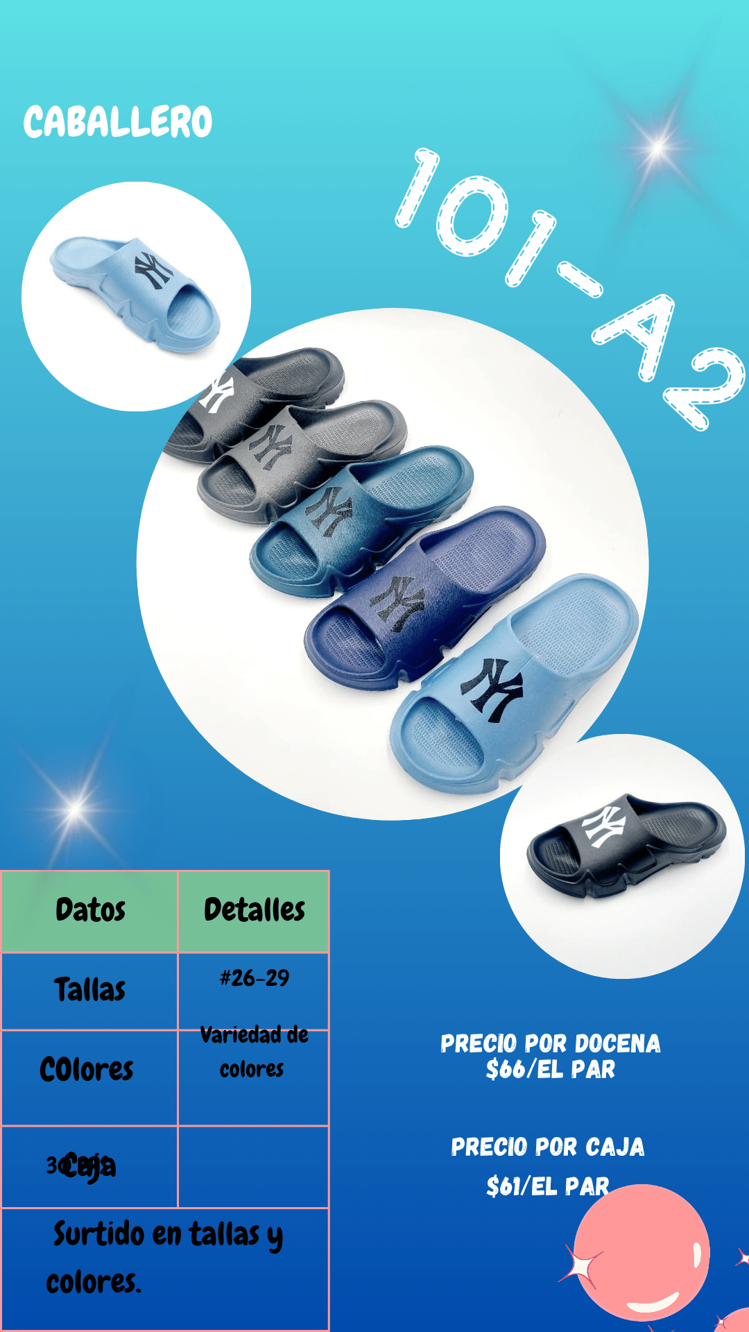 Sandalia 101 A2 caballero. Tallas 26 al 29, paquete de 30 pares.