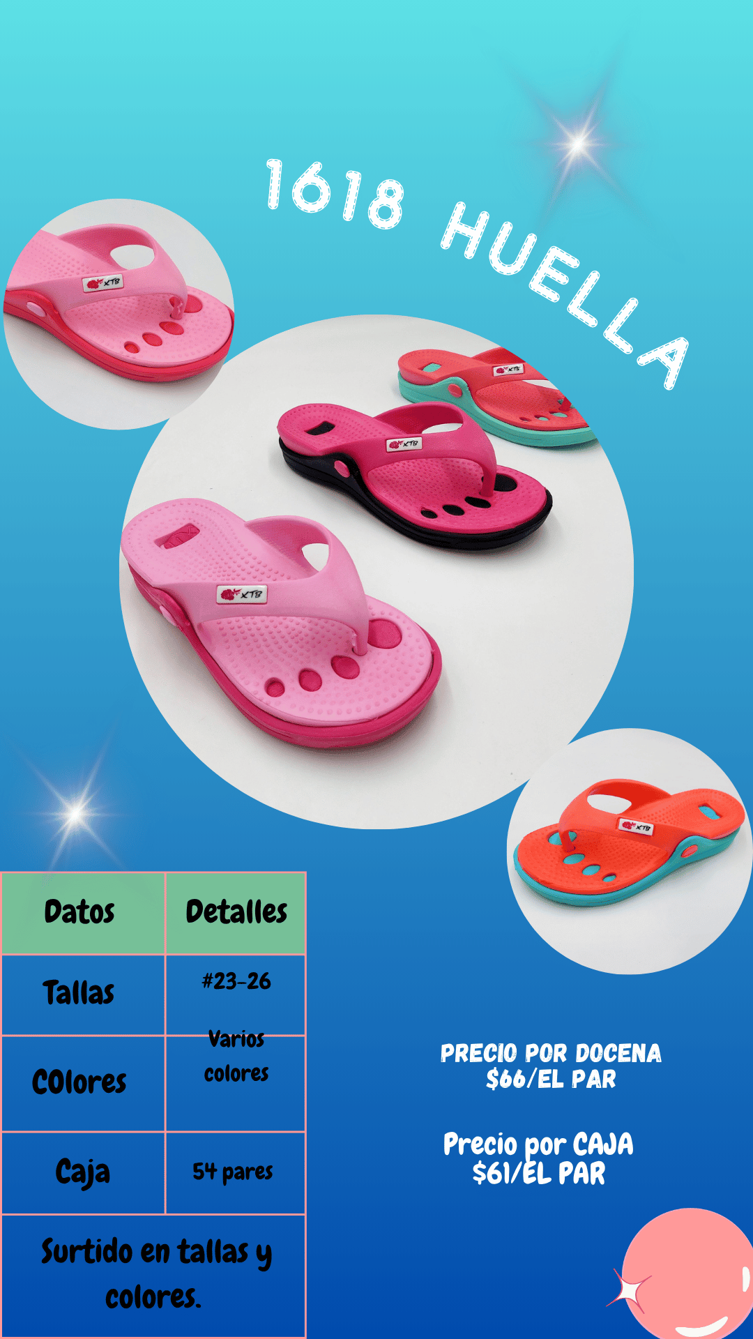 Sandalia 1618 huella dama. Tallas 23 al 26, paquete de 54 pares.