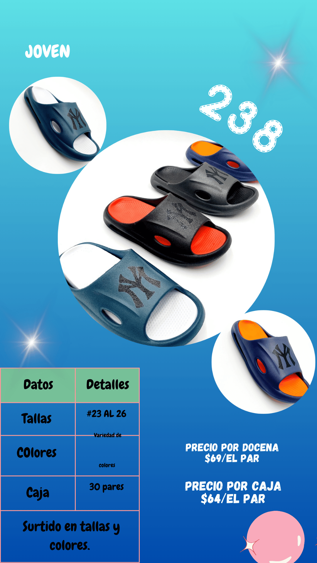 Sandalia 238 junior. Tallas 23 al 26, paquete de 30 pares.
