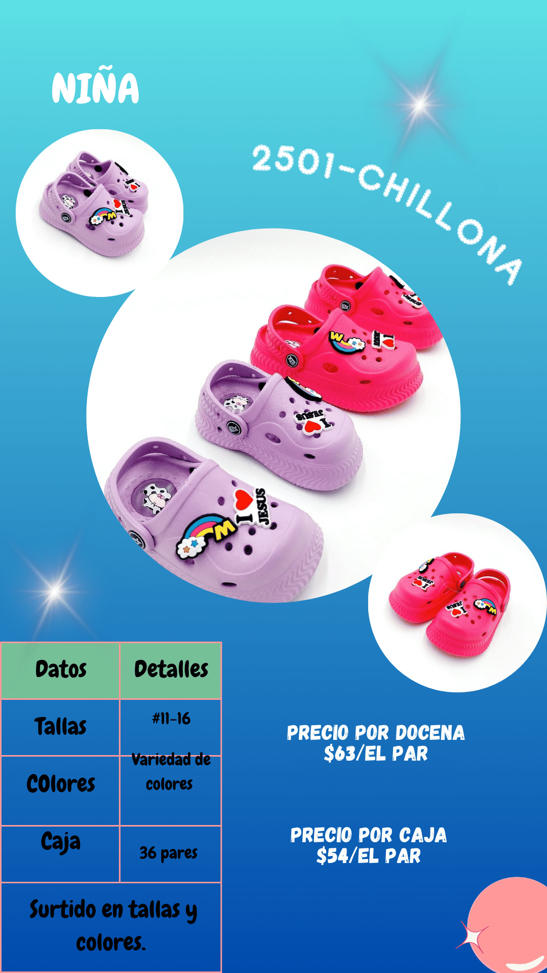 Sandalia 2501 chillona niña. Tallas 11 al 16, paquete de 36 pares.