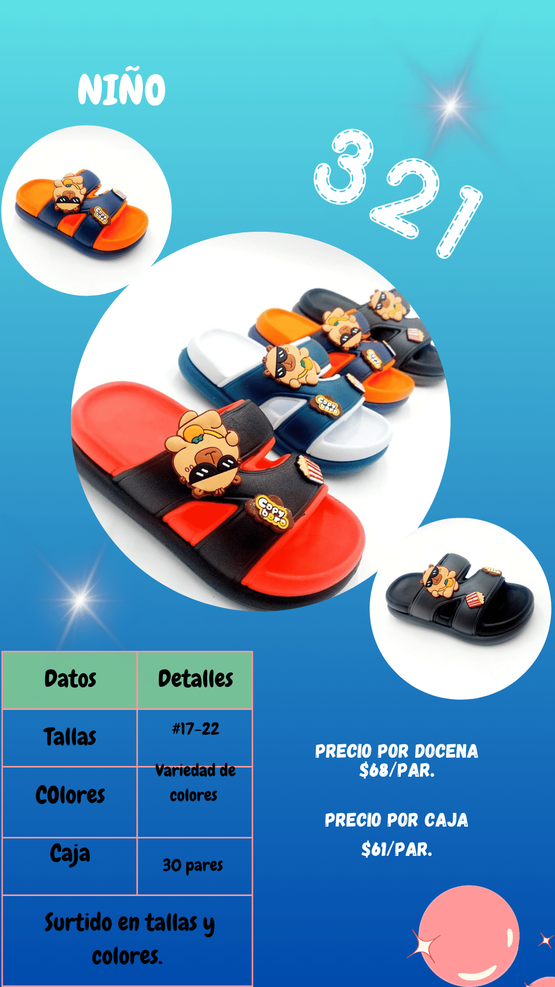 Sandalia 321 niño. Tallas 17 al 22, paquete de 30 pares.