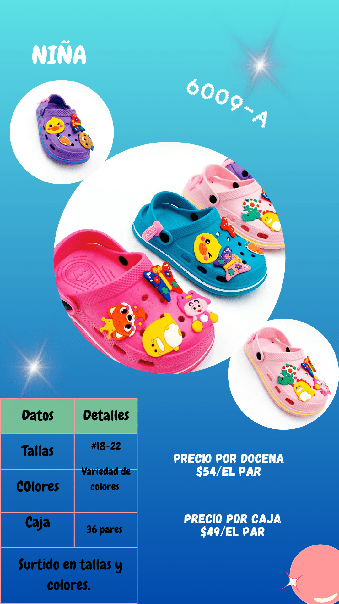 Sandalia 6009A niña. Tallas 18 al 22, paquete de 36 pares.