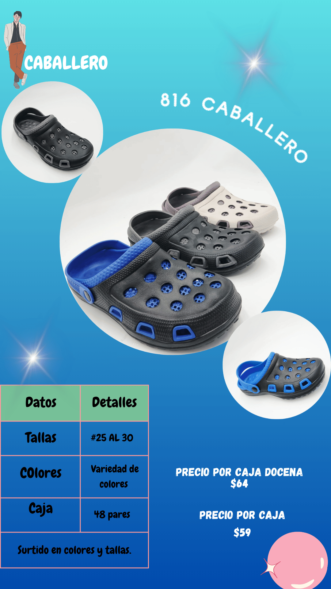 Sandalia 816 caballero. Tallas 25 al 30, paquete de 48 pares.