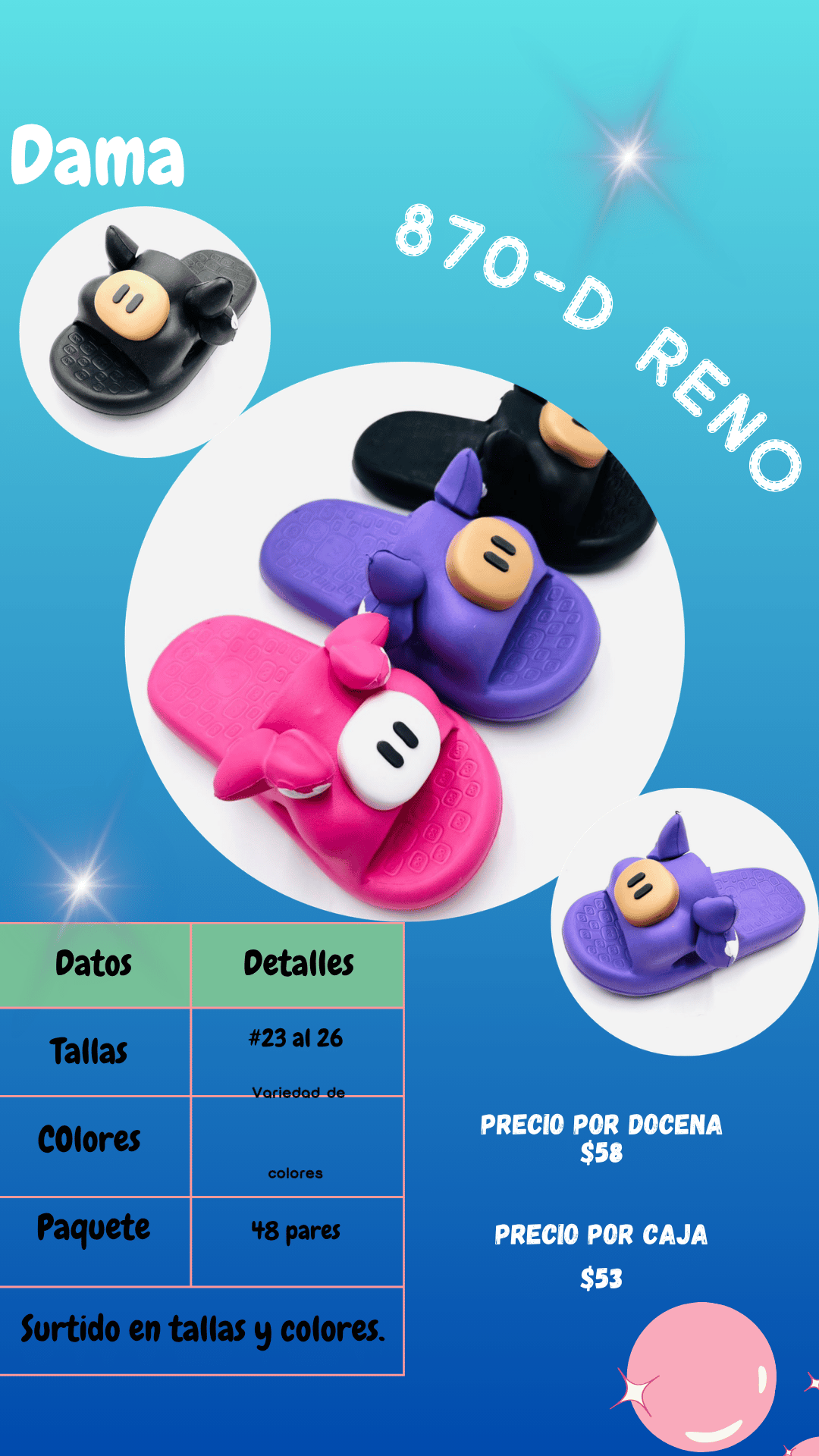 Sandalia 870D dama. Tallas 23 al 26, paquete de 48 pares.