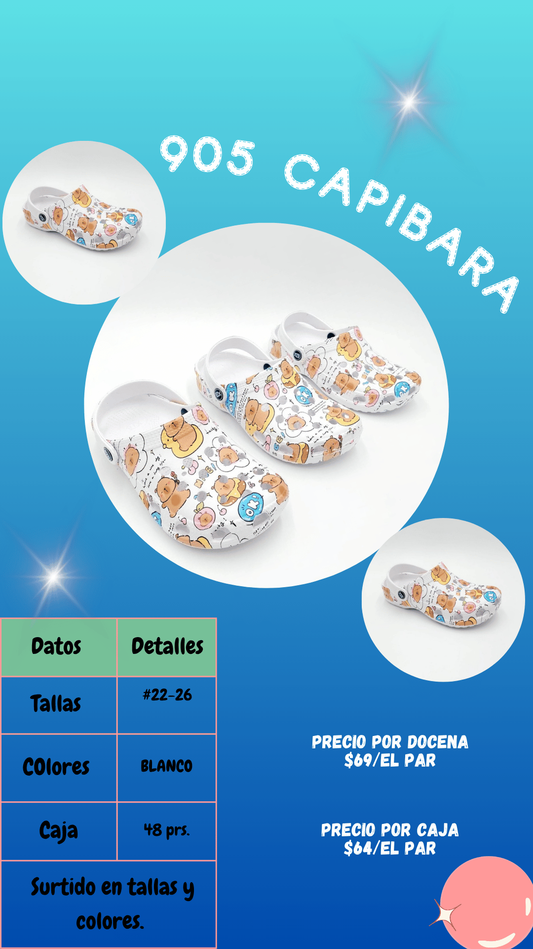 Sandalia 905 capibara dama. Tallas 22 al 26, paquete de 48 pares.