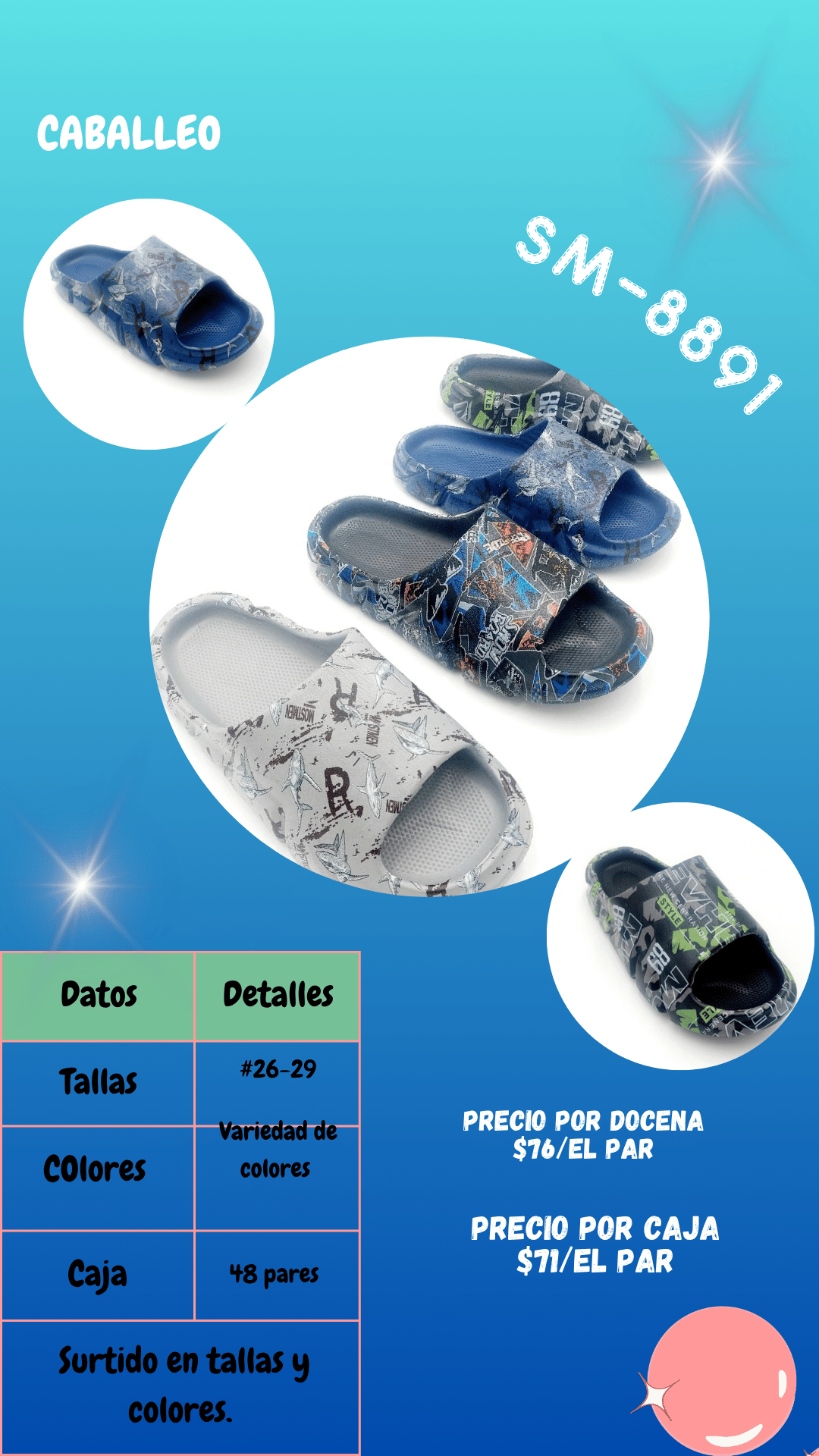 Sandalia SM 8891 caballero. Tallas 26 al 29, paquete de 48 pares.