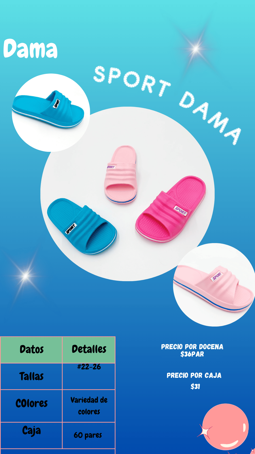 Sandalia Sport dama. Tallas 23 al 26, paquete de 60 pares.