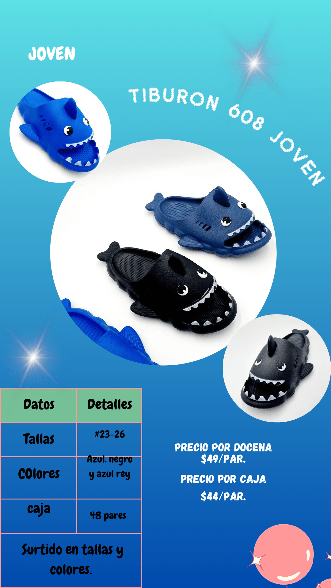 Sandalia Tiburón 608 Junior. Tallas 23 al 26, paquete de 48 pares.