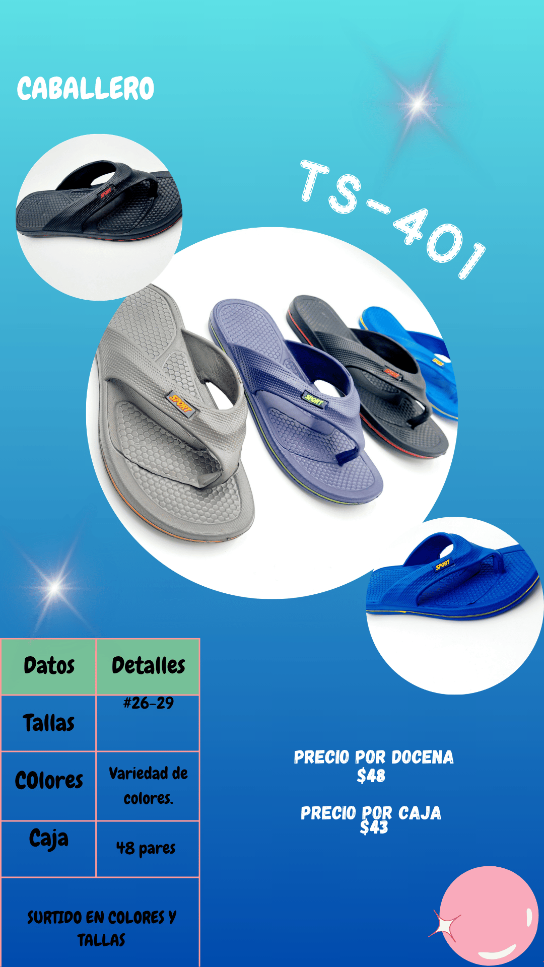 Sandalia TS401 caballero. Tallas 26 al 29, paquete de 48 pares.