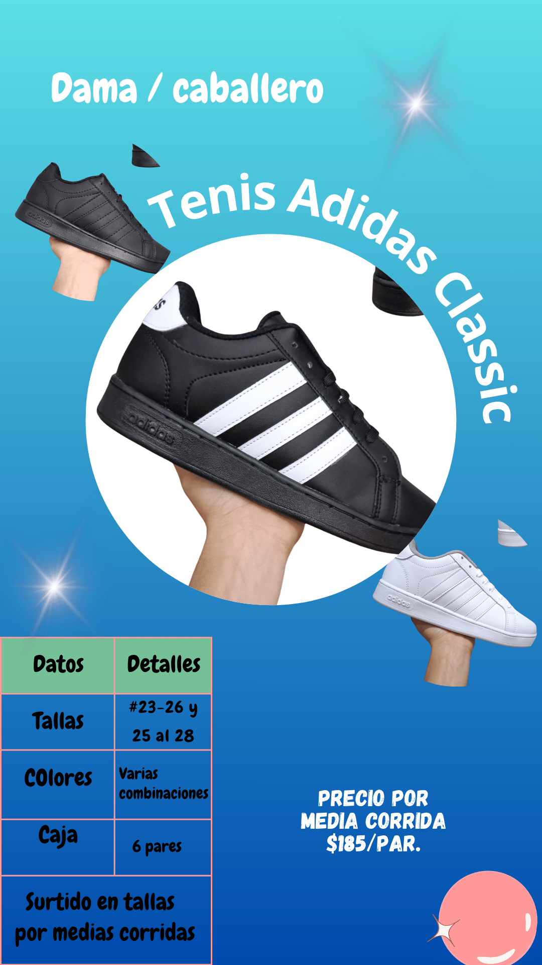 Tenis Adidas Classic caballero. Tallas 25 al 28, paquete de 6 pares.
