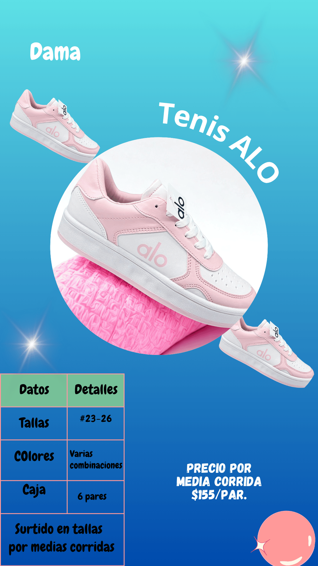 Tenis ALO dama. Tallas 23 al 26, paquete de 6 pares.
