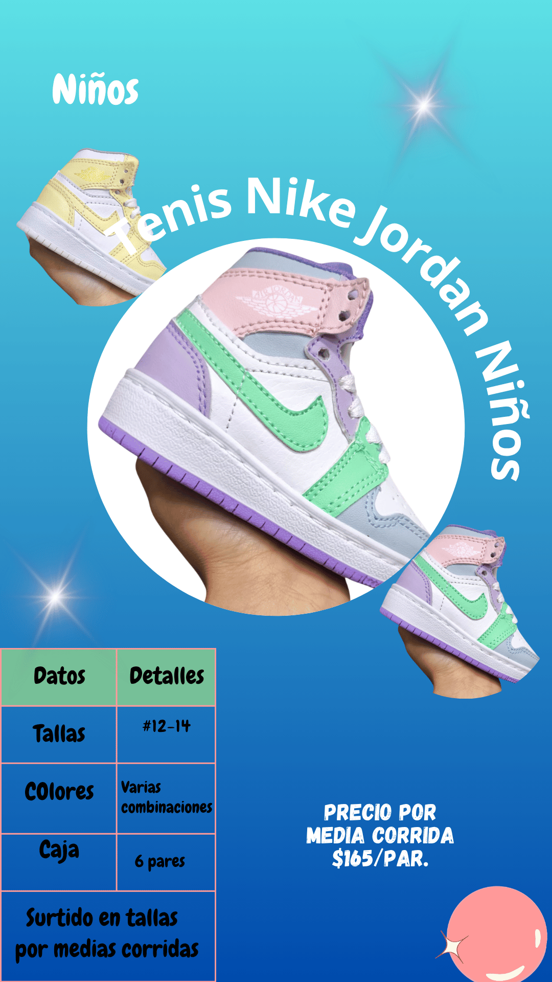 Tenis Nike Jordan niños. Tallas 12 al 14, paquete de 6 pares.