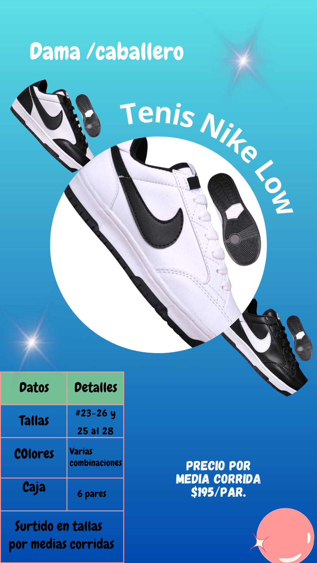 Tenis Nike Low caballero. Tallas 25 al 28, paquete de 6 pares.