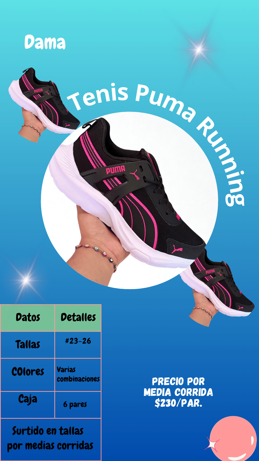 Tenis Puma Running dama. Tallas 23 al 26, paquete de 6 pares.