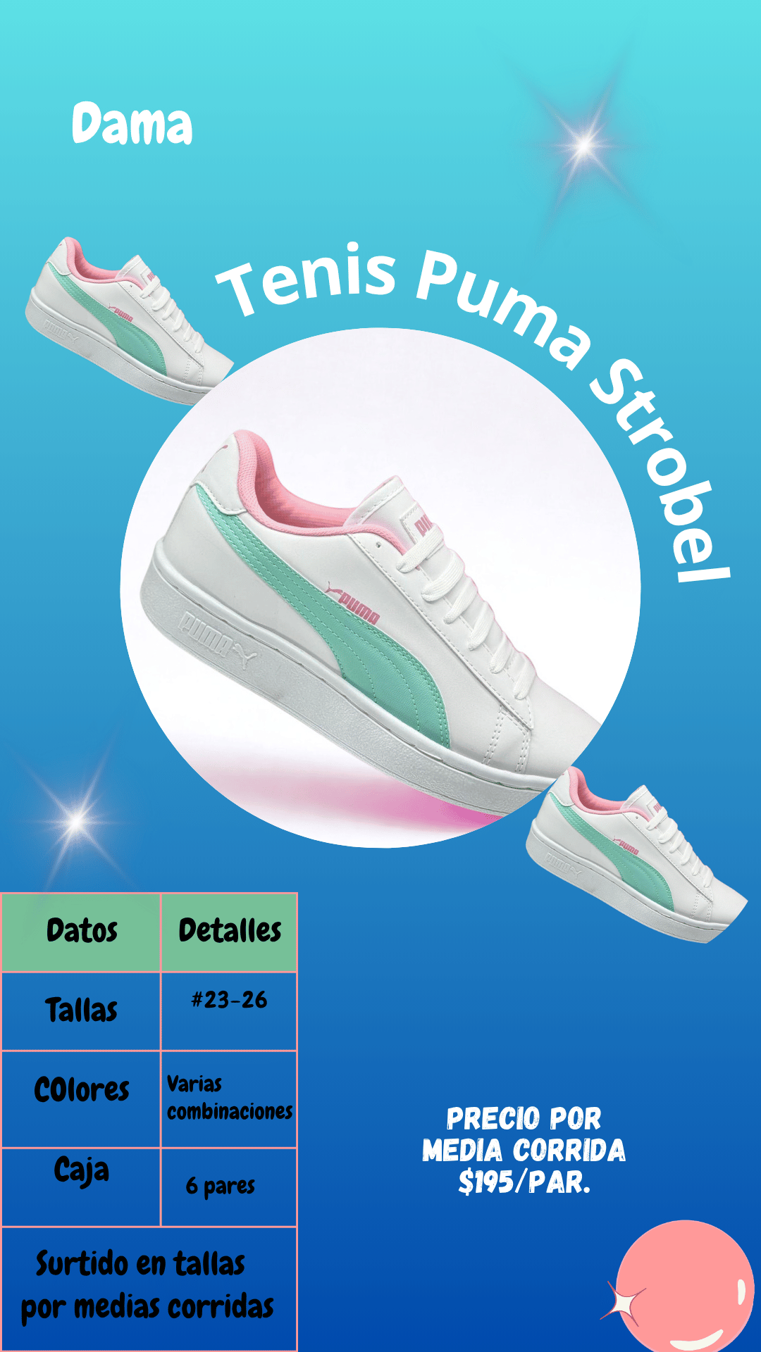 Tenis Puma Suede Strobel dama. Tallas 23 al 26, paquete de 6 pares.