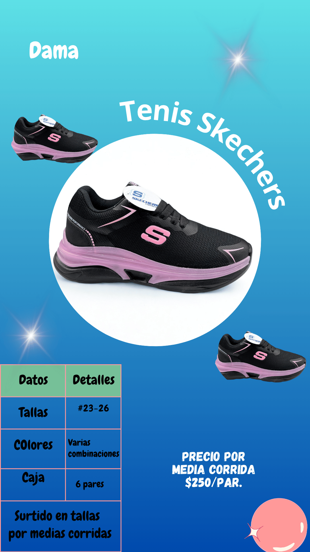 Tenis Skechers dama. Tallas 23 al 26, paquete de 6 pares.