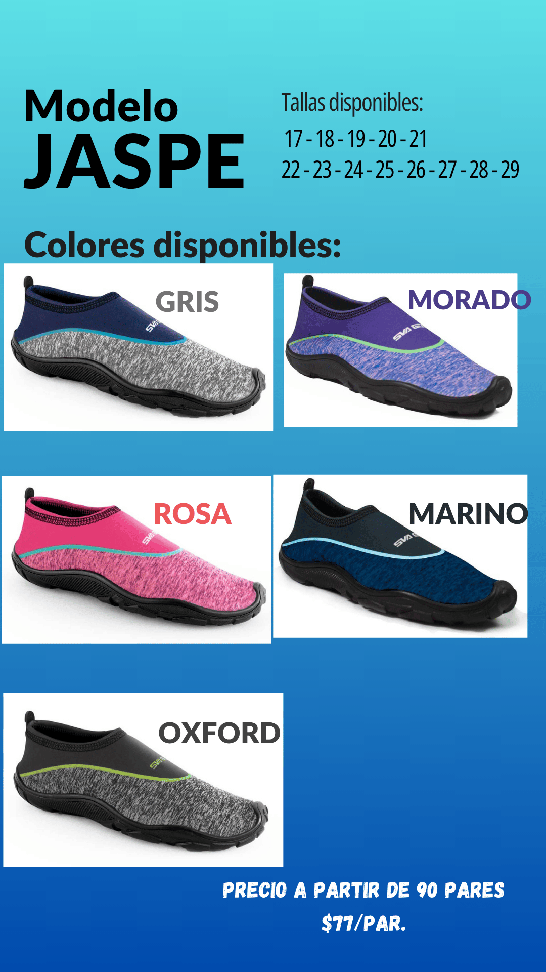 Zapato Acuático modelo Jaspe. Tallas 17 al 29, paquete de 90 pares.