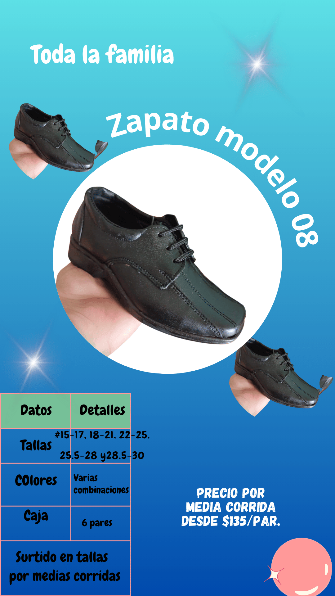 Zapato modelo 08. Tallas 17 al 21, paquete de 086 pares.